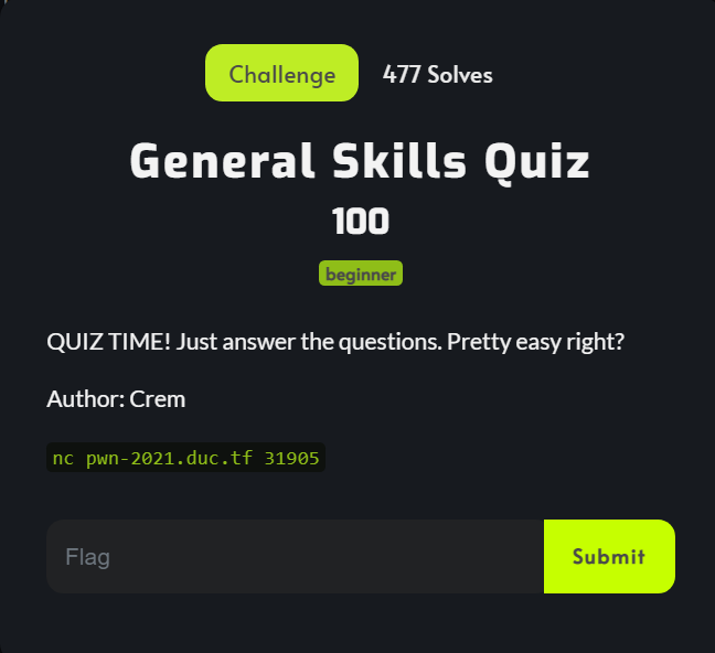 We will answer all quiz (10s/question) to get the flag. But, I think it so difficult to “handmade” all quiz. So, I wrote this script to walk through challenge =)))