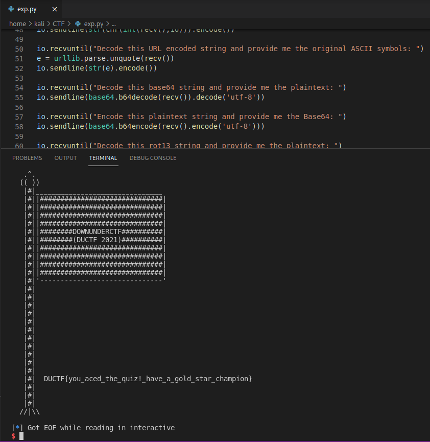 io.sendline(str("DUCTF").encode())