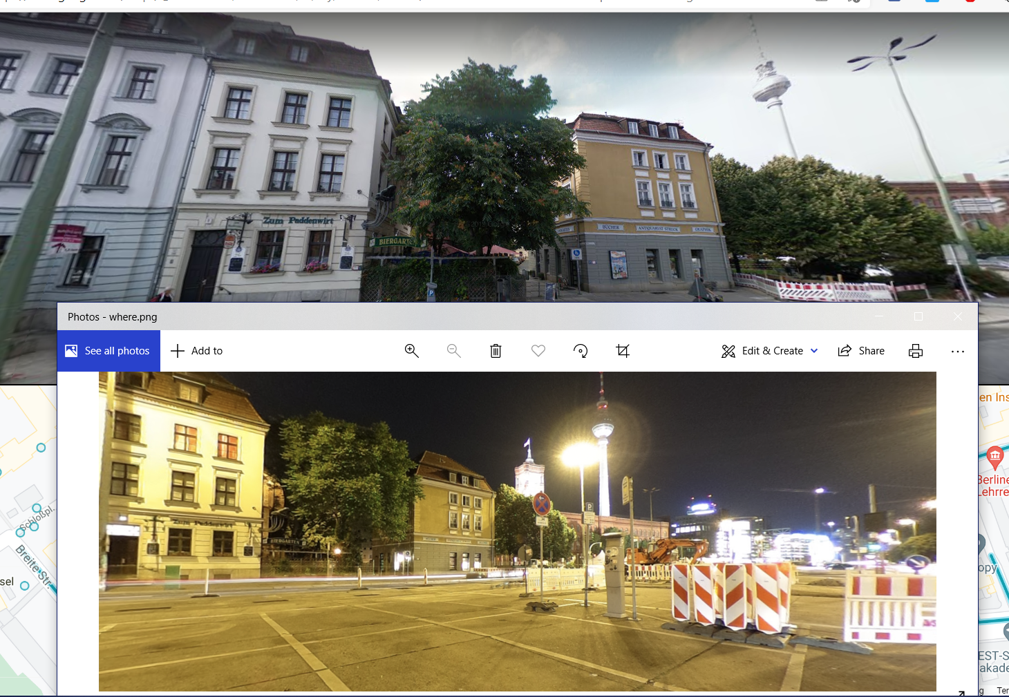 Look at the picture, I was impressed by the tower behind. But we can’t guess that what it name and where it is. After researching something special on the picture, I see the text on the building wall. I guess that this text is “Zum Puddelwerk”. Use my google maps skill and I got a information relate to that name. That is the name of street in Germany. So that, I used two information about the given picture for the next step.